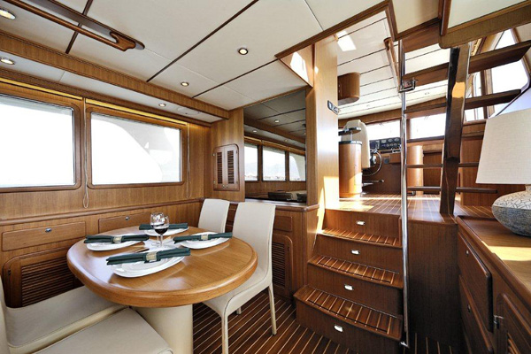 Parkett aus lackiertem Teakholz im ganzen Boot