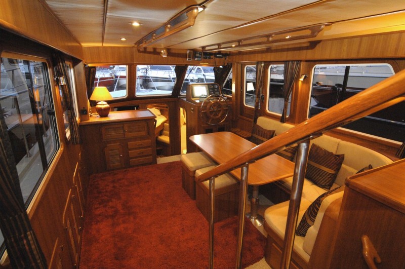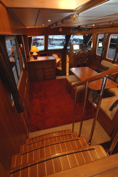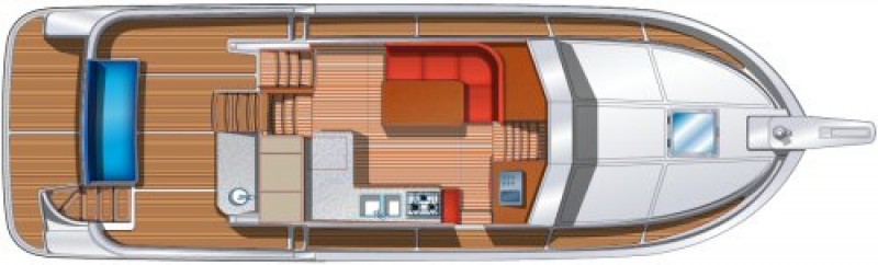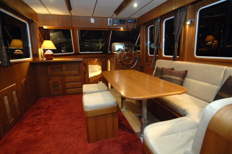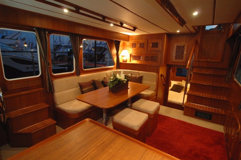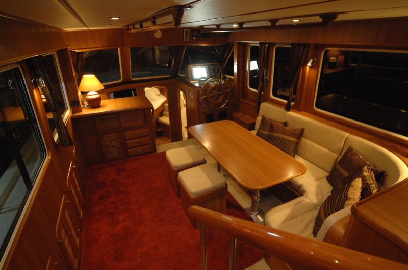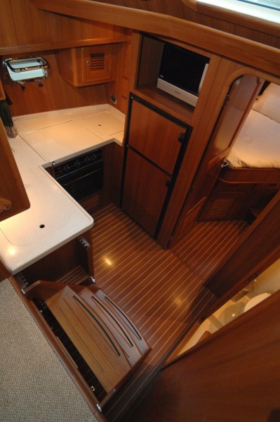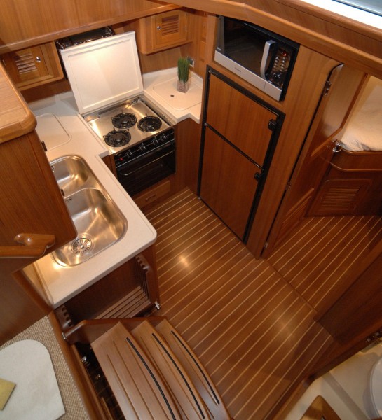 Parkett aus lackiertem Teakholz im ganzen Boot